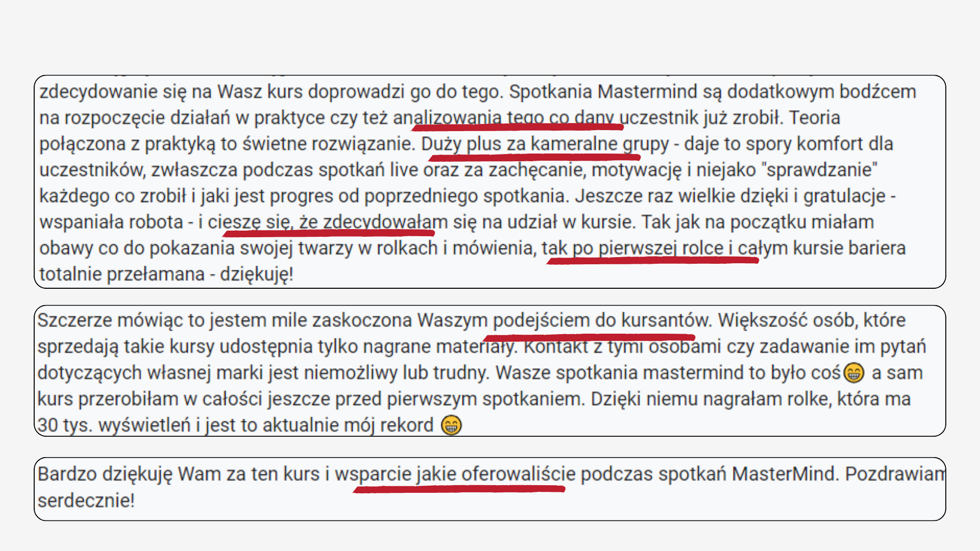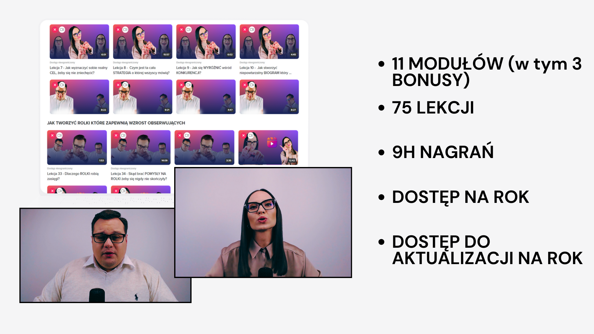 W tym module znajduje się 11 lekcji, w których po kolei omawiamy najpopularniejsze błędy twórców na Instagramie, które powodują, że ich konta nie rosną a marka się nie rozwija. Ich unikanie pozwoli Ci osiągać efekty dużo szybciej, bez straty czasu na ich popełnianie i stresu z tym związanego.